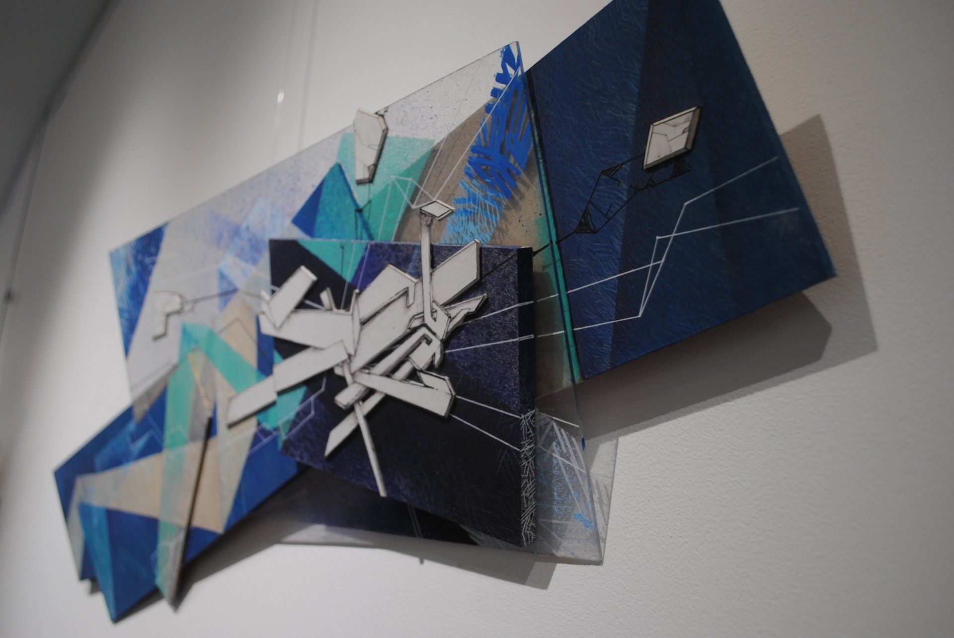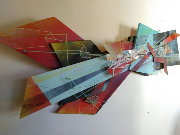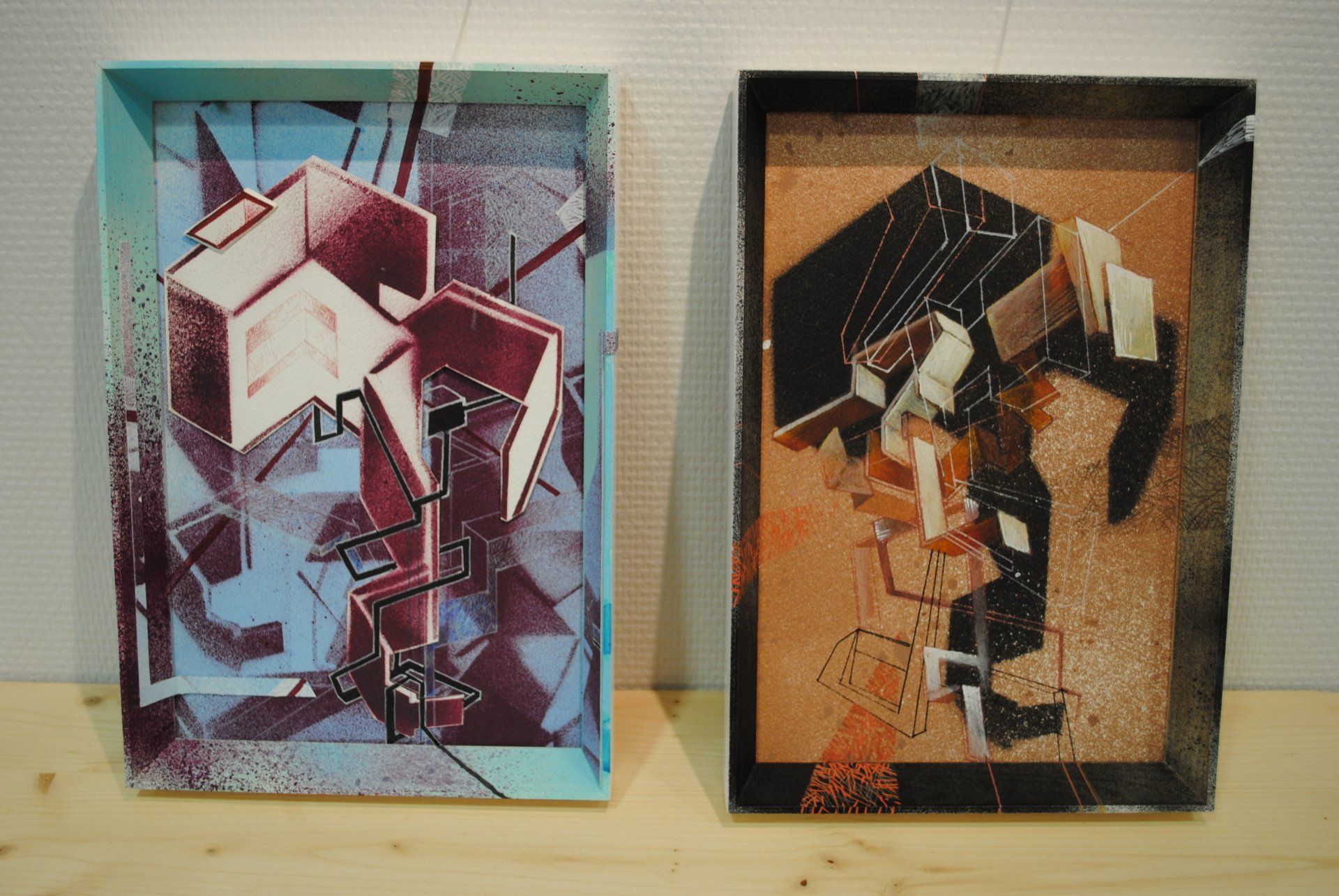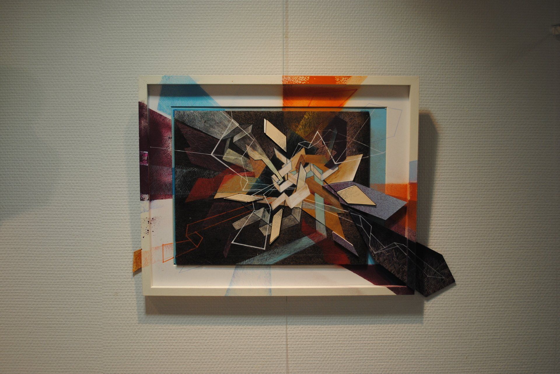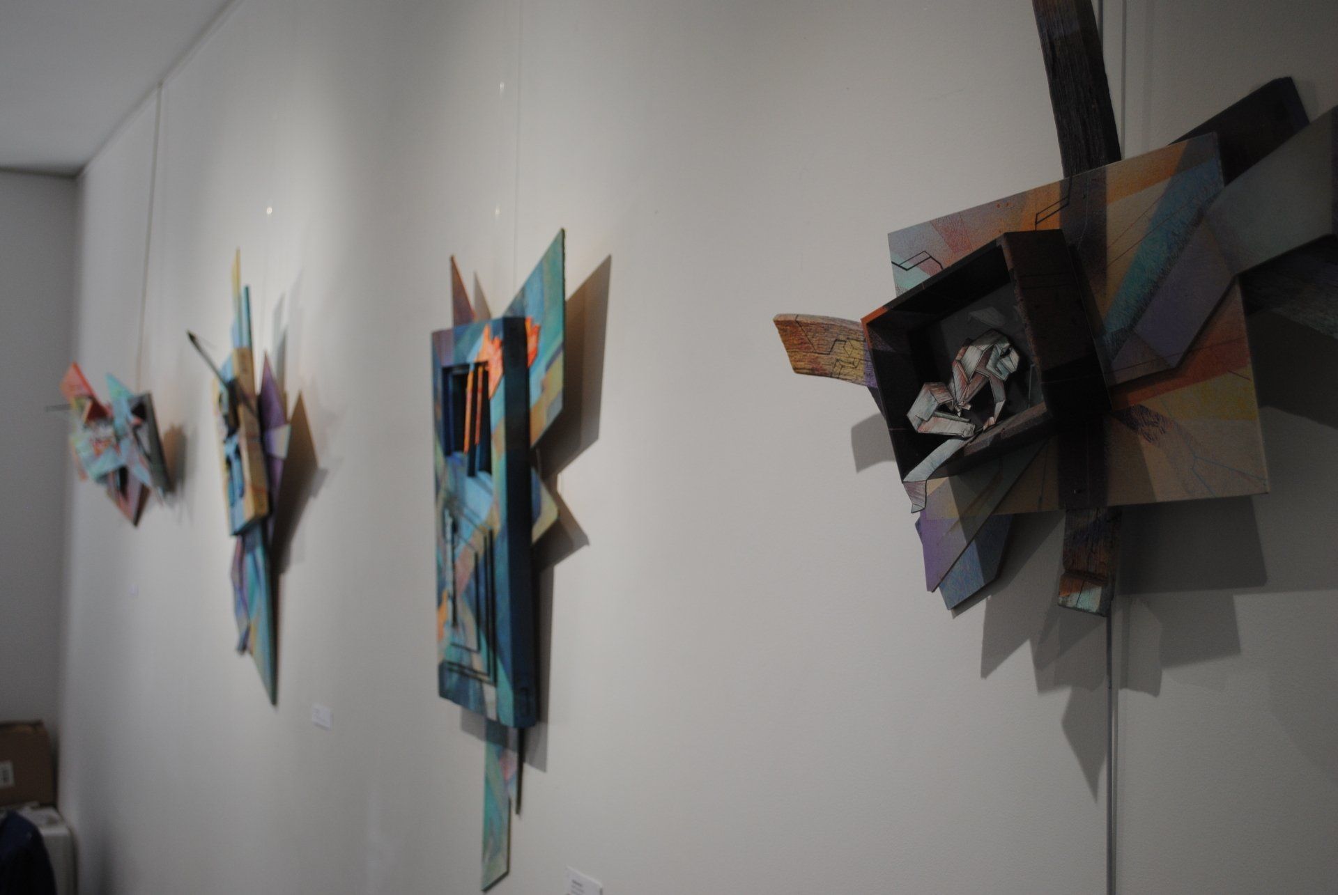 Une galerie marqué par le balancier de mes inspirations, parce que si on peut voir poindre des semblants de séries dans mon travail, elles ne sont pas produites ainsi, c’est plus un aller-retour entre mes mondes formels et colorés.