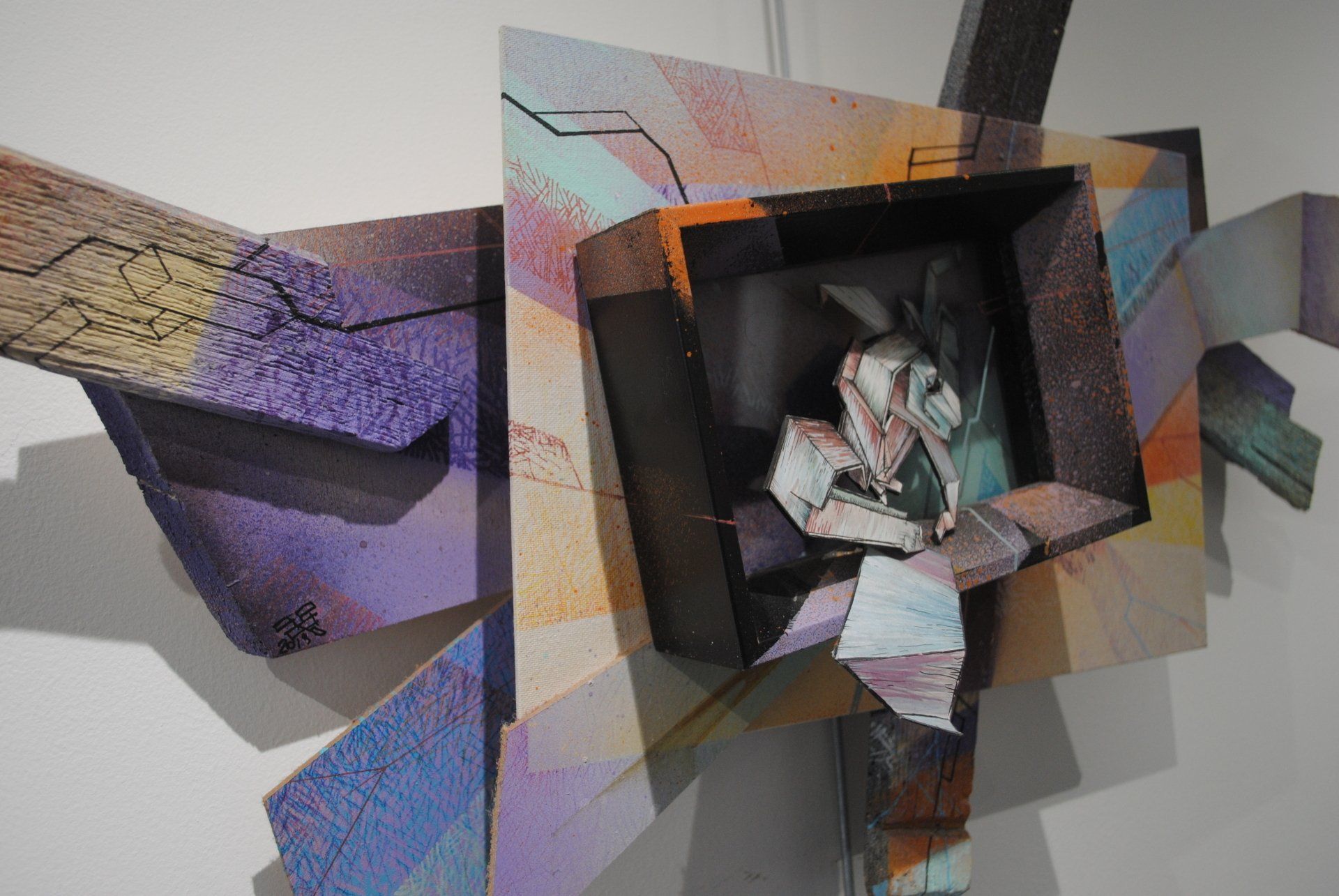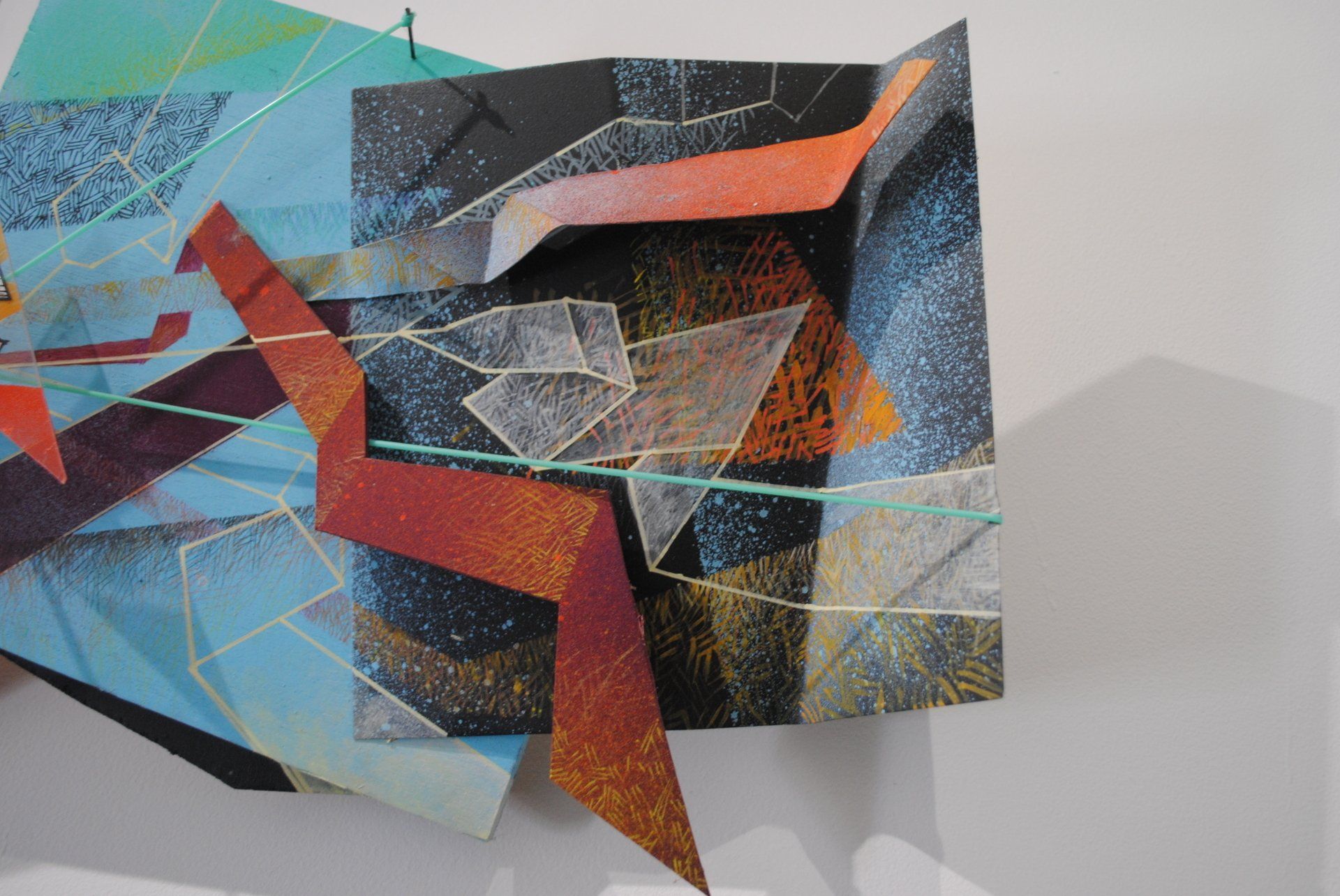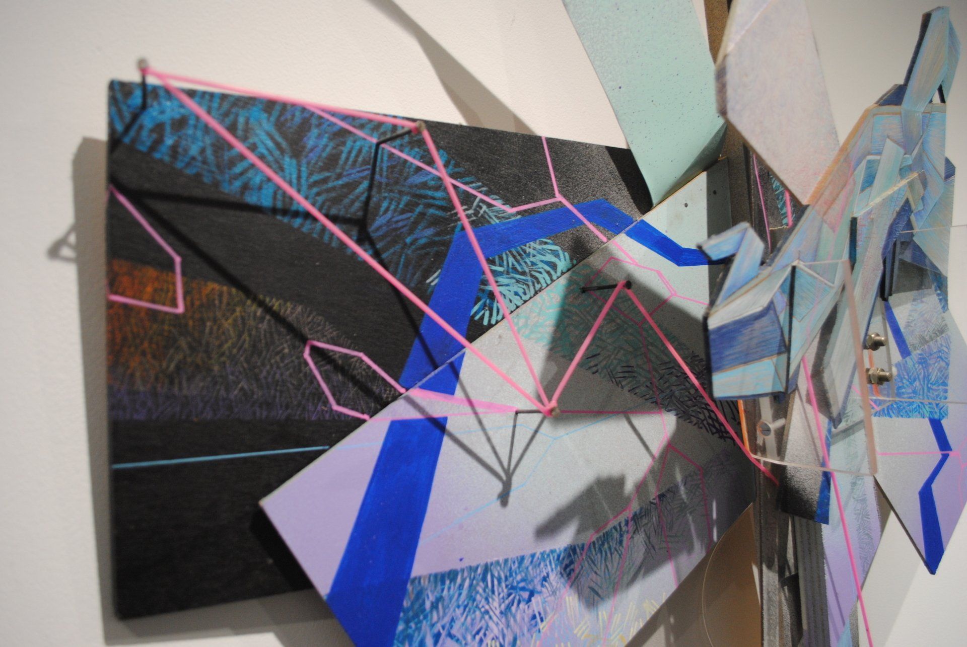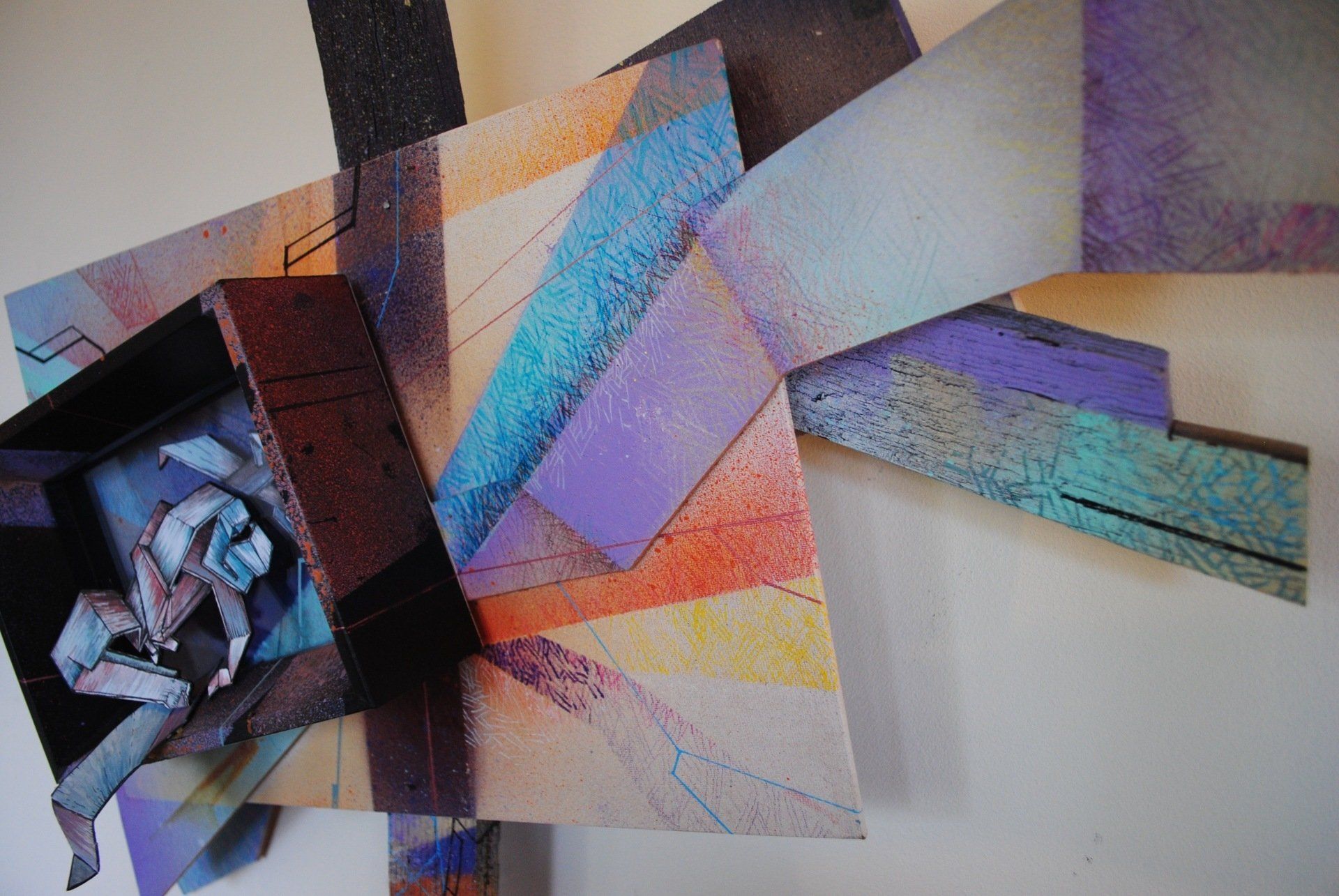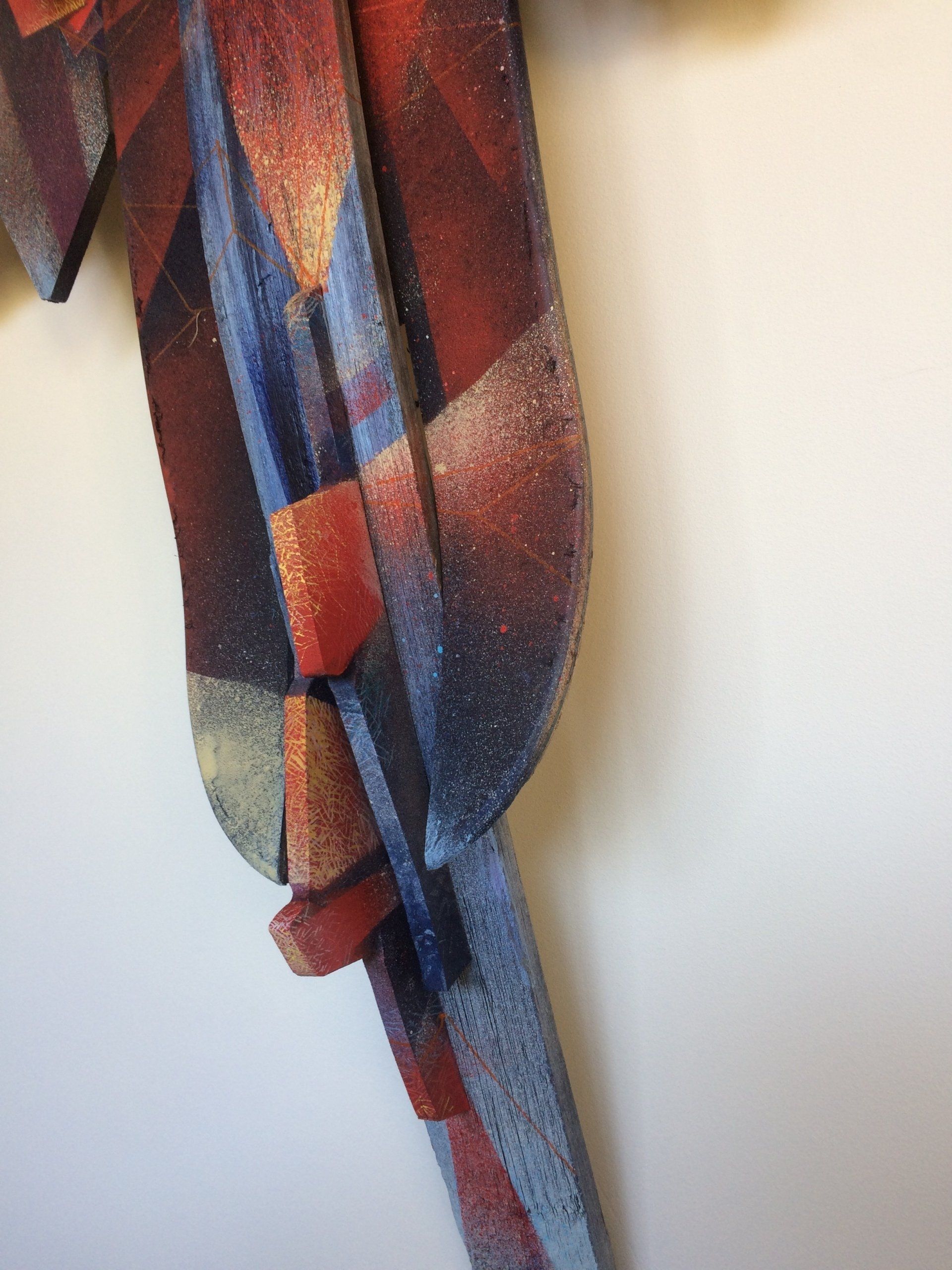 Une galerie marqué par le balancier de mes inspirations, parce que si on peut voir poindre des semblants de séries dans mon travail, elles ne sont pas produites ainsi, c’est plus un aller-retour entre mes mondes formels et colorés.