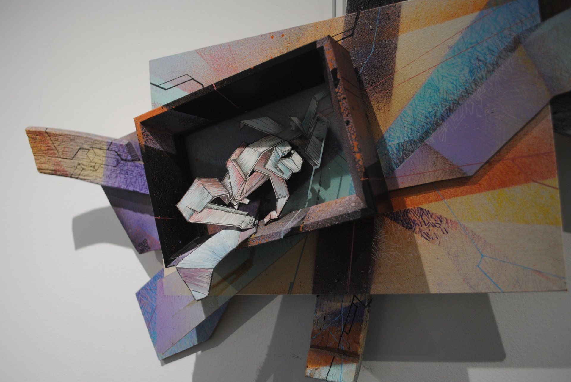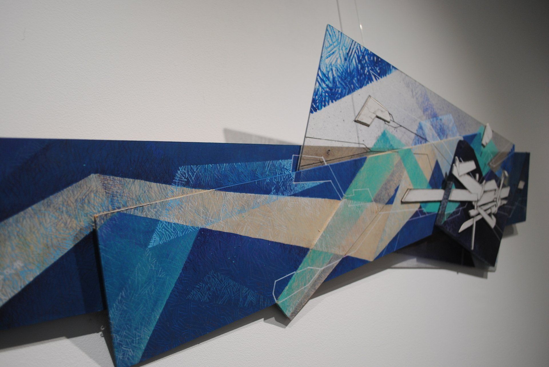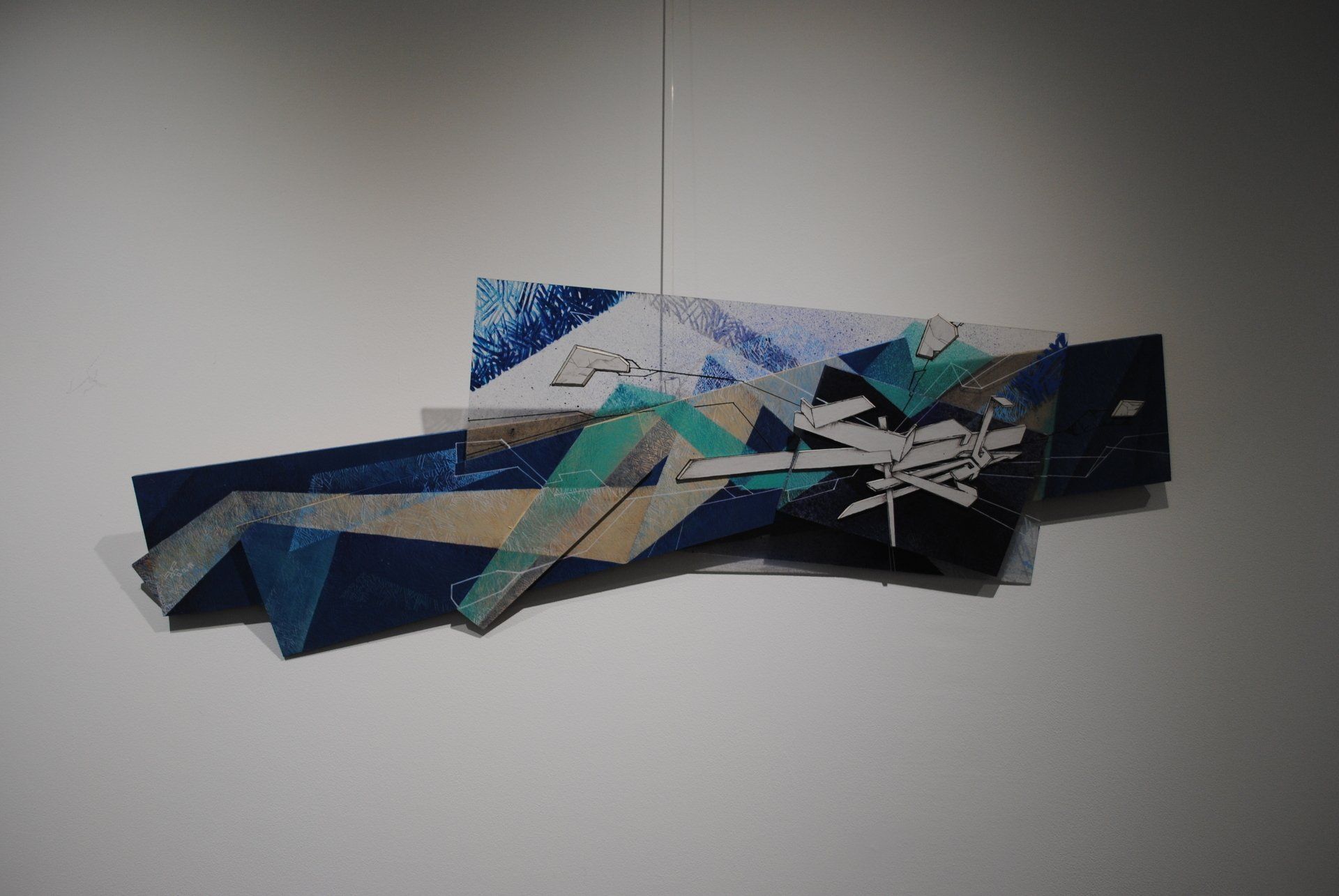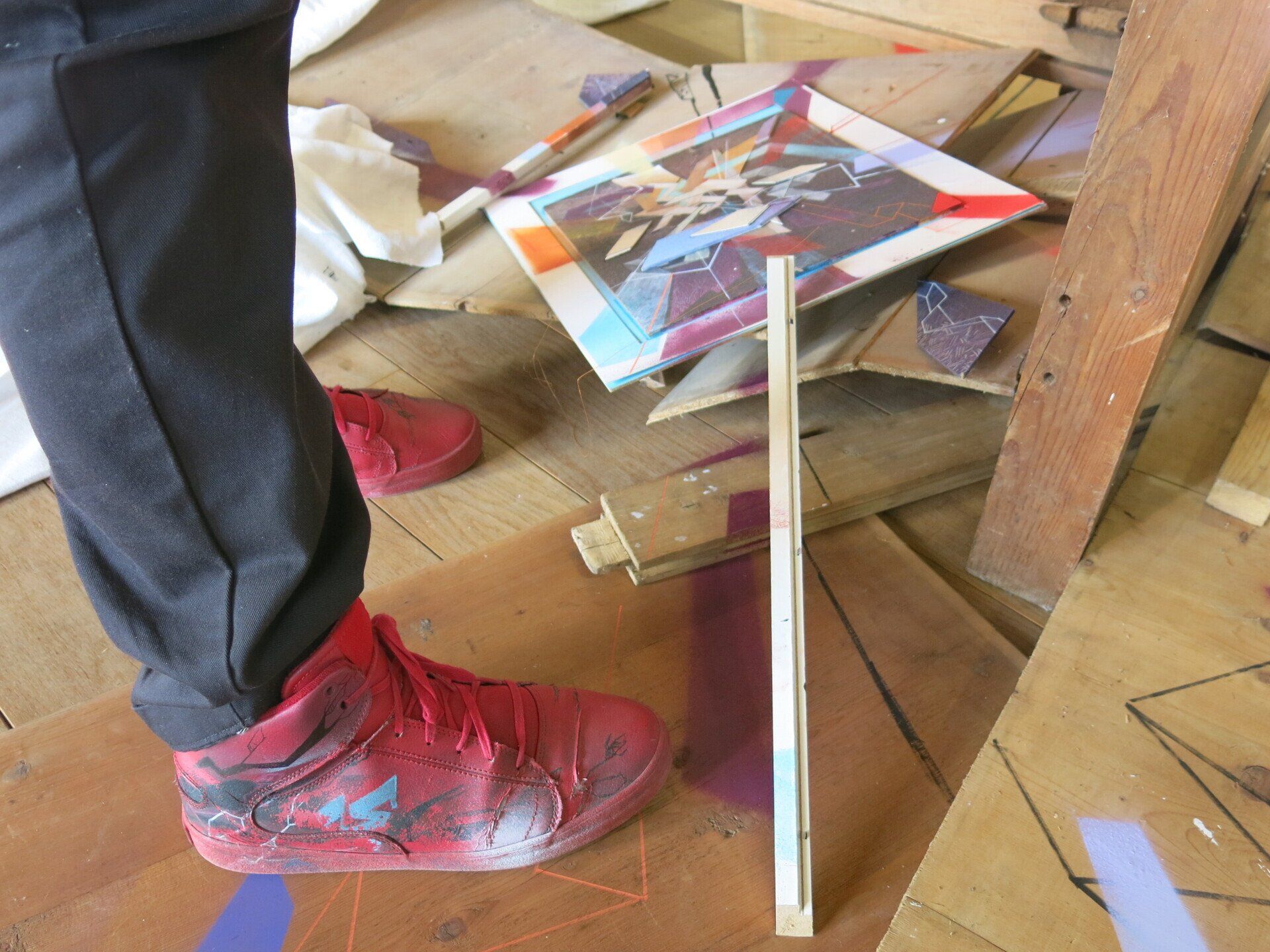 Une galerie marqué par le balancier de mes inspirations, parce que si on peut voir poindre des semblants de séries dans mon travail, elles ne sont pas produites ainsi, c’est plus un aller-retour entre mes mondes formels et colorés.