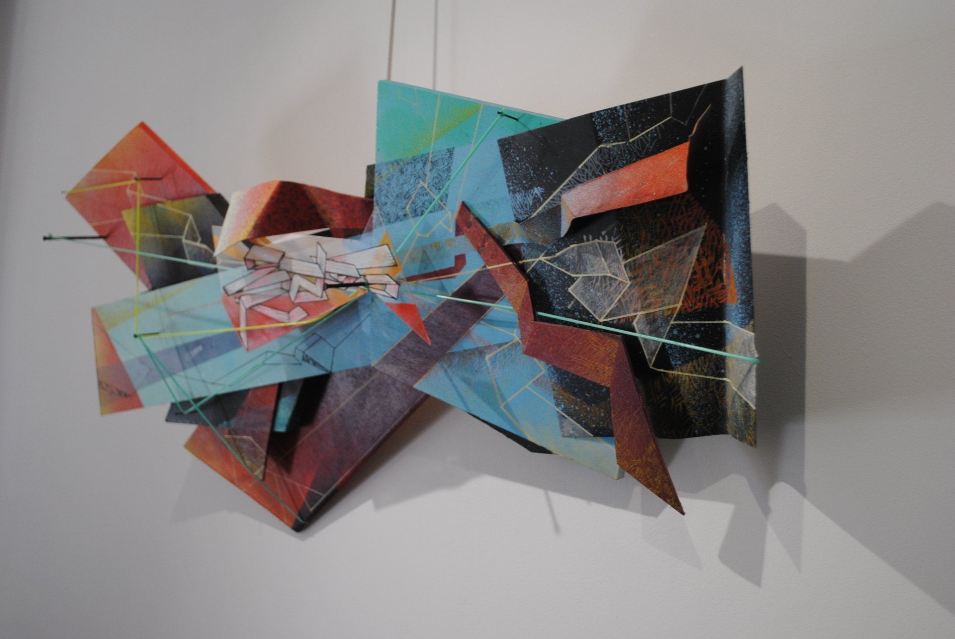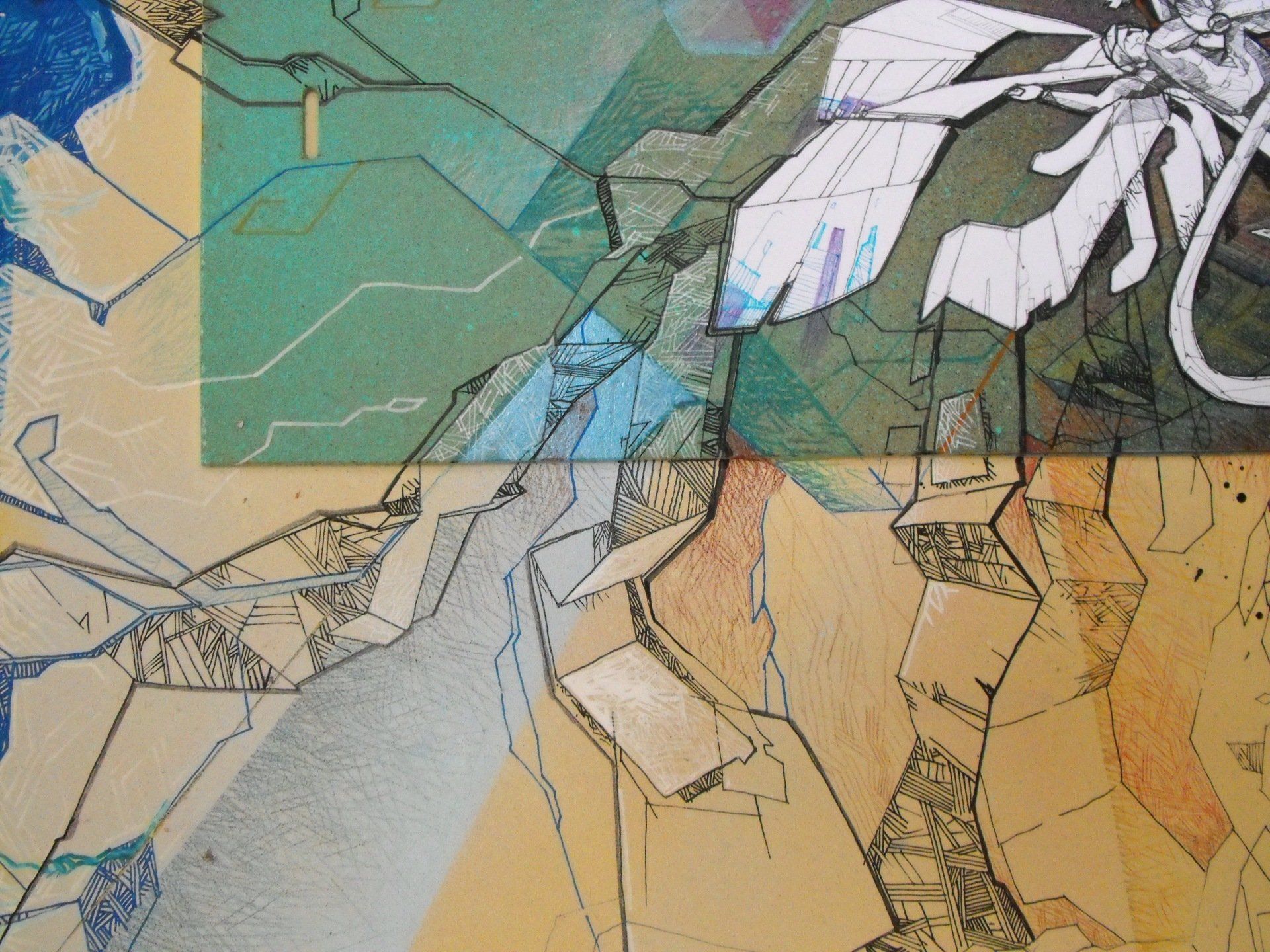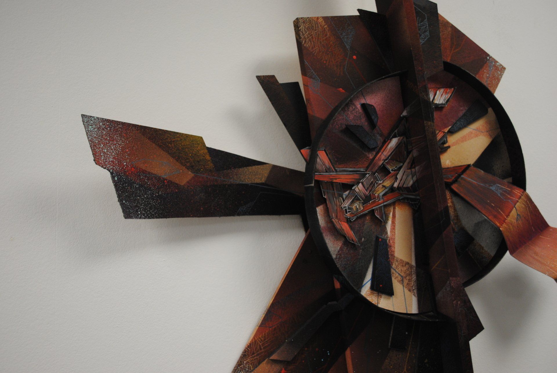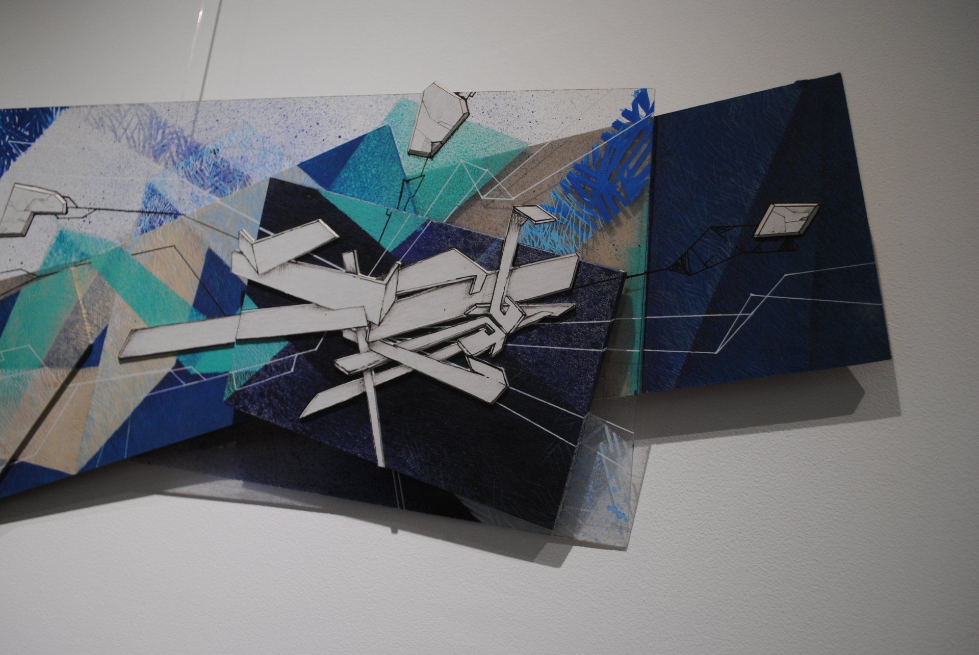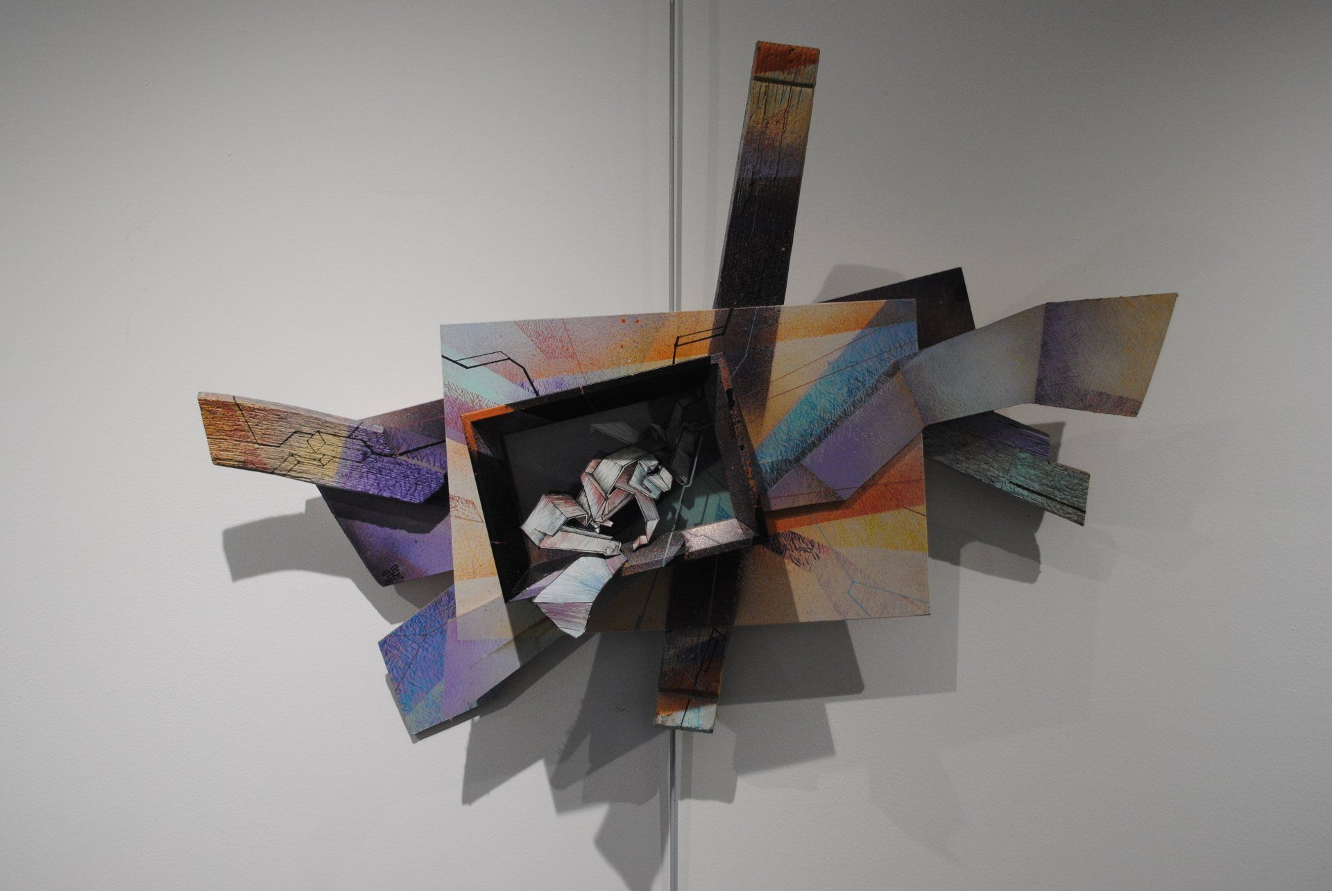 Une galerie marqué par le balancier de mes inspirations, parce que si on peut voir poindre des semblants de séries dans mon travail, elles ne sont pas produites ainsi, c’est plus un aller-retour entre mes mondes formels et colorés.