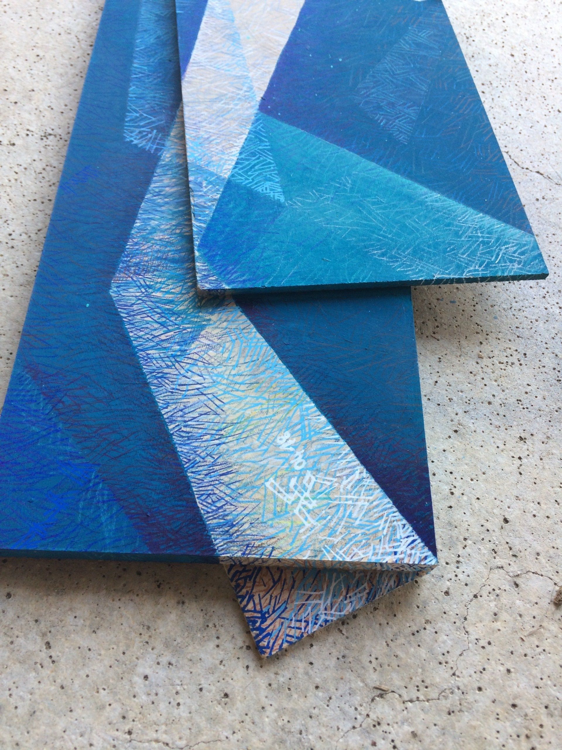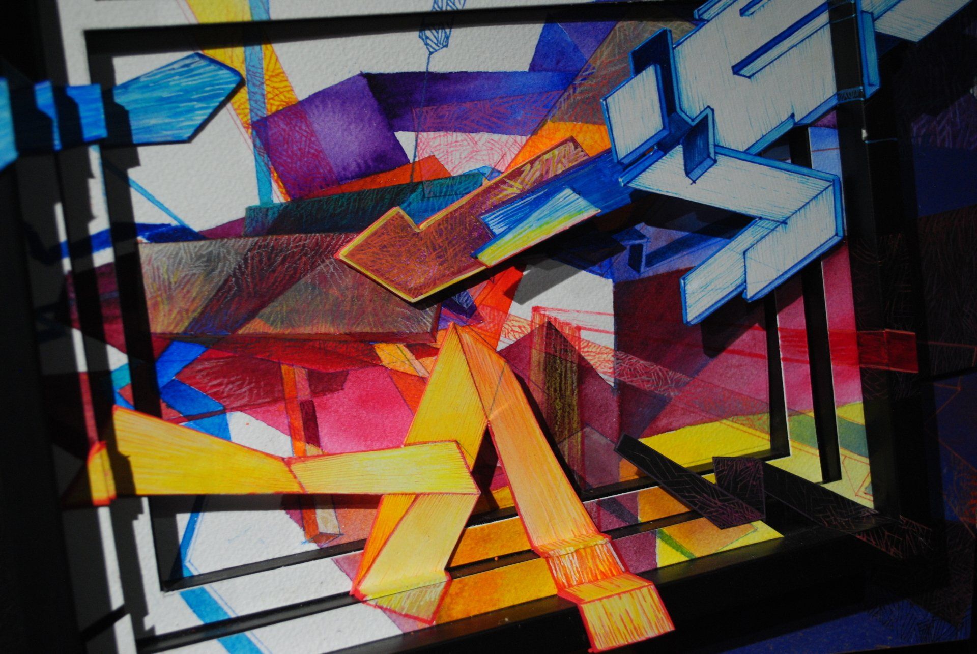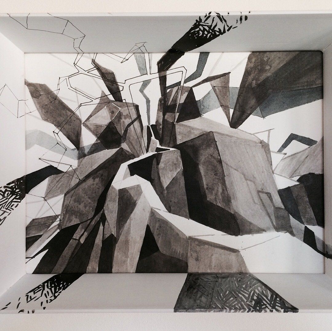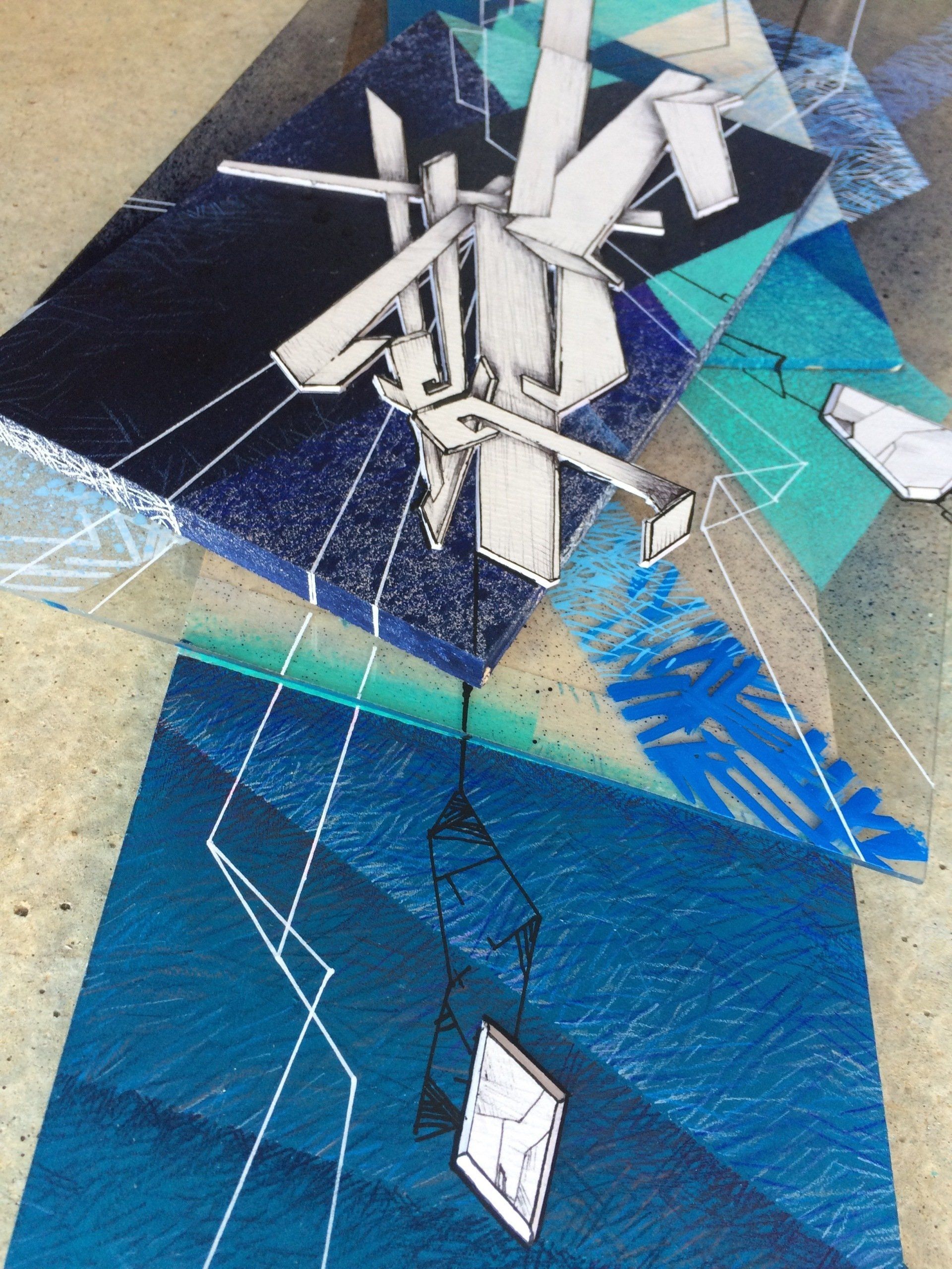 Une galerie marqué par le balancier de mes inspirations, parce que si on peut voir poindre des semblants de séries dans mon travail, elles ne sont pas produites ainsi, c’est plus un aller-retour entre mes mondes formels et colorés.