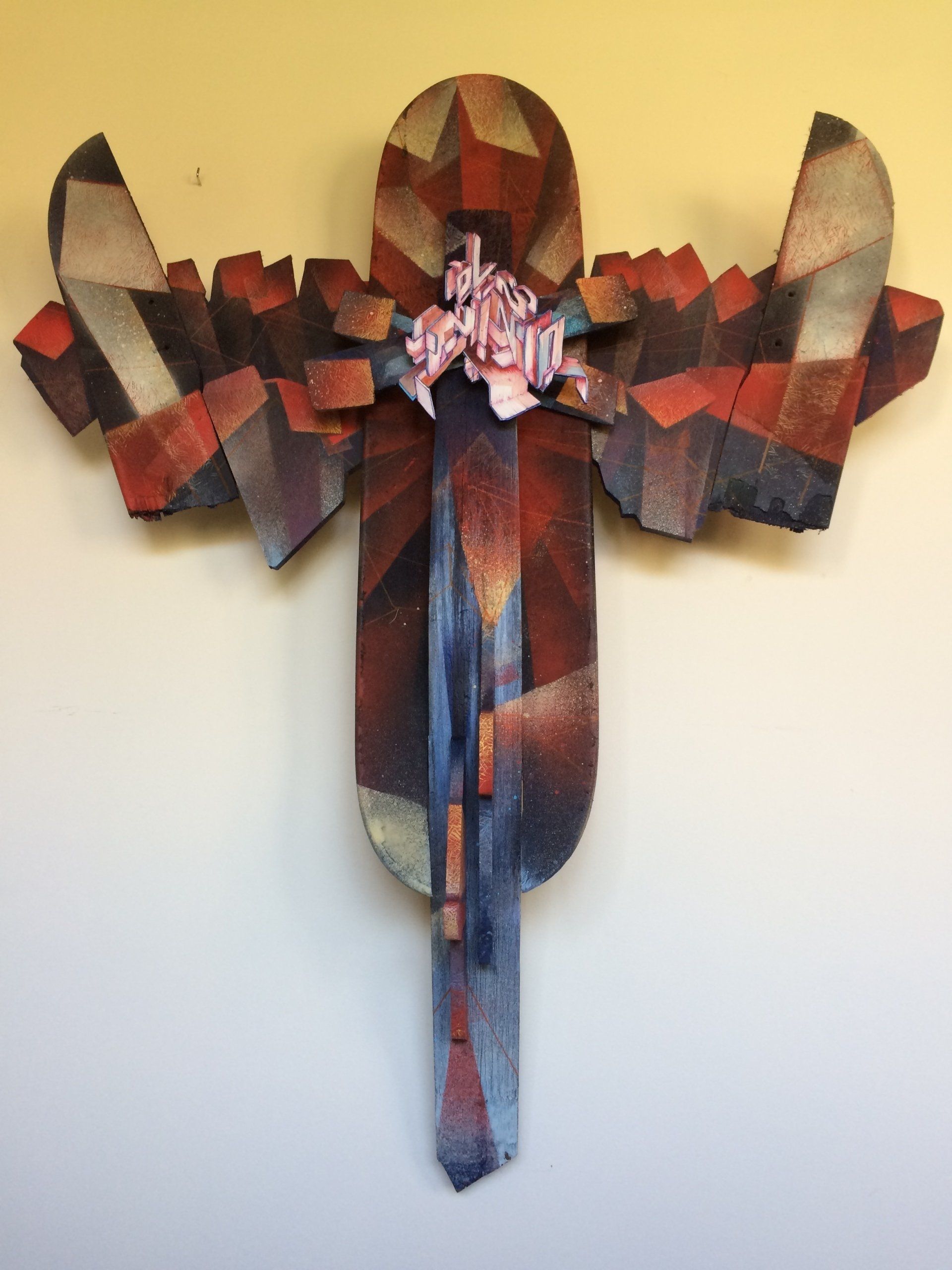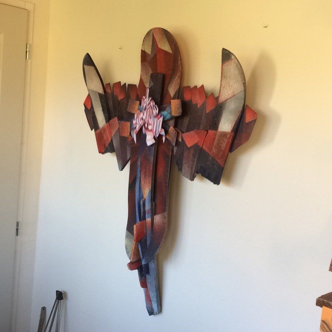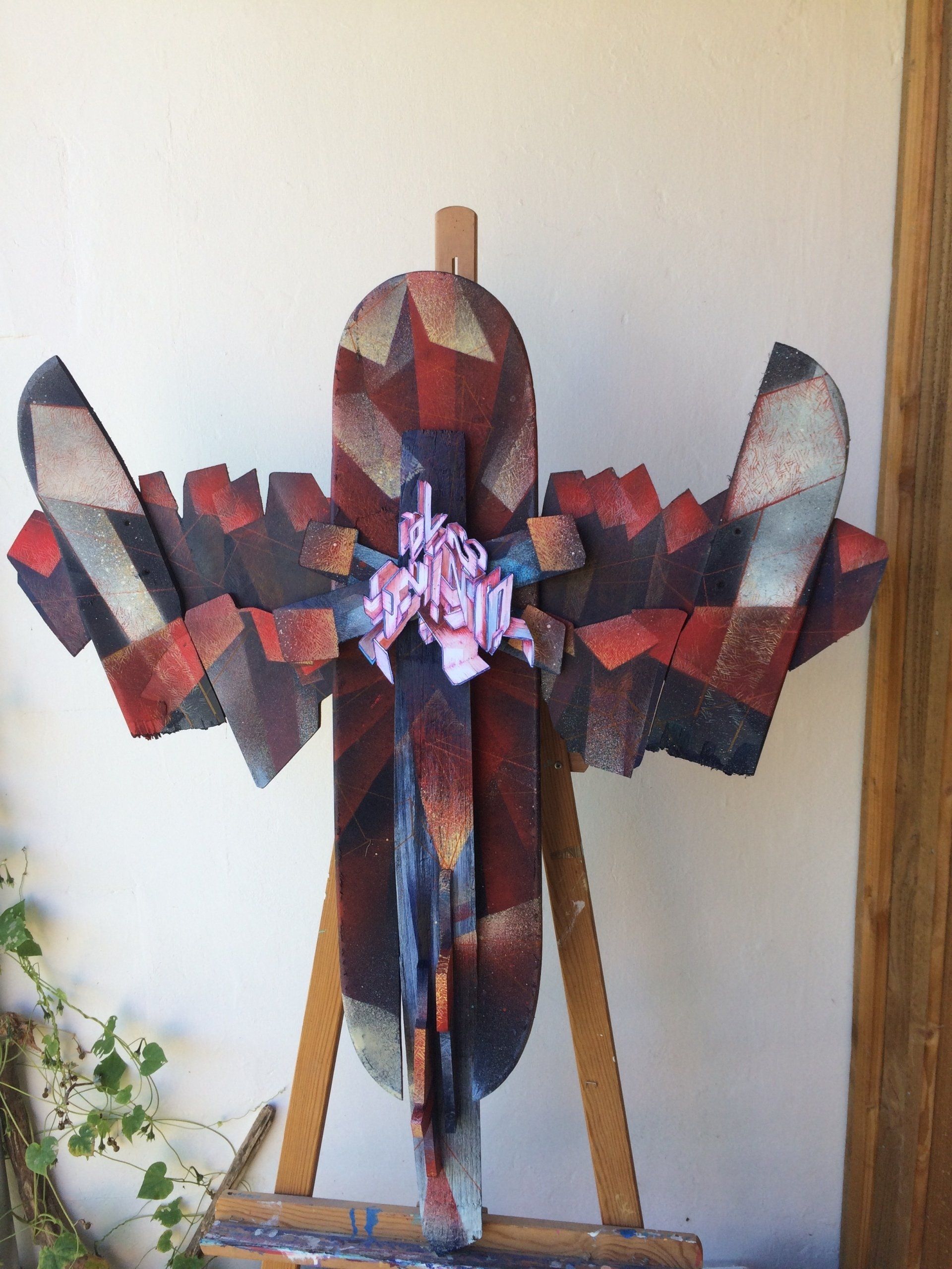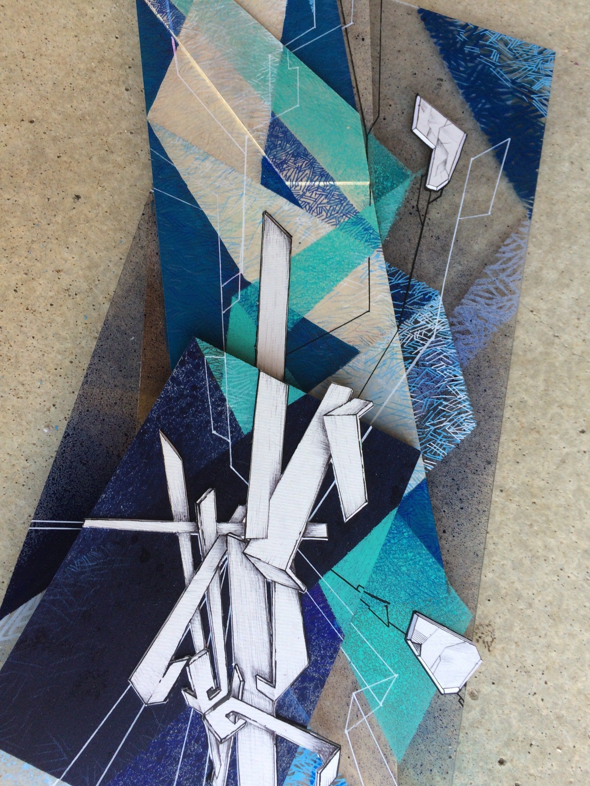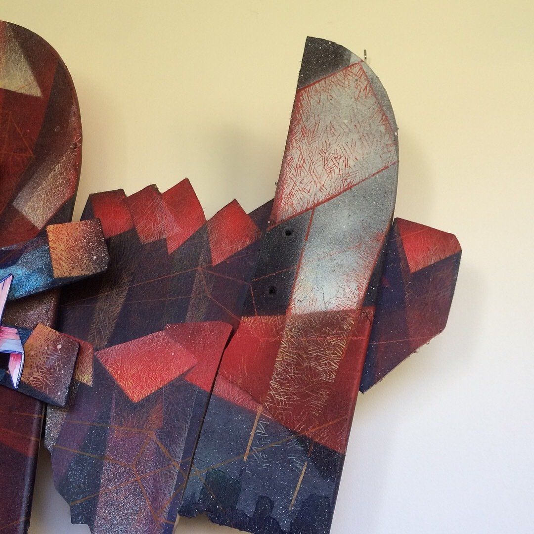 Une galerie marqué par le balancier de mes inspirations, parce que si on peut voir poindre des semblants de séries dans mon travail, elles ne sont pas produites ainsi, c’est plus un aller-retour entre mes mondes formels et colorés.
