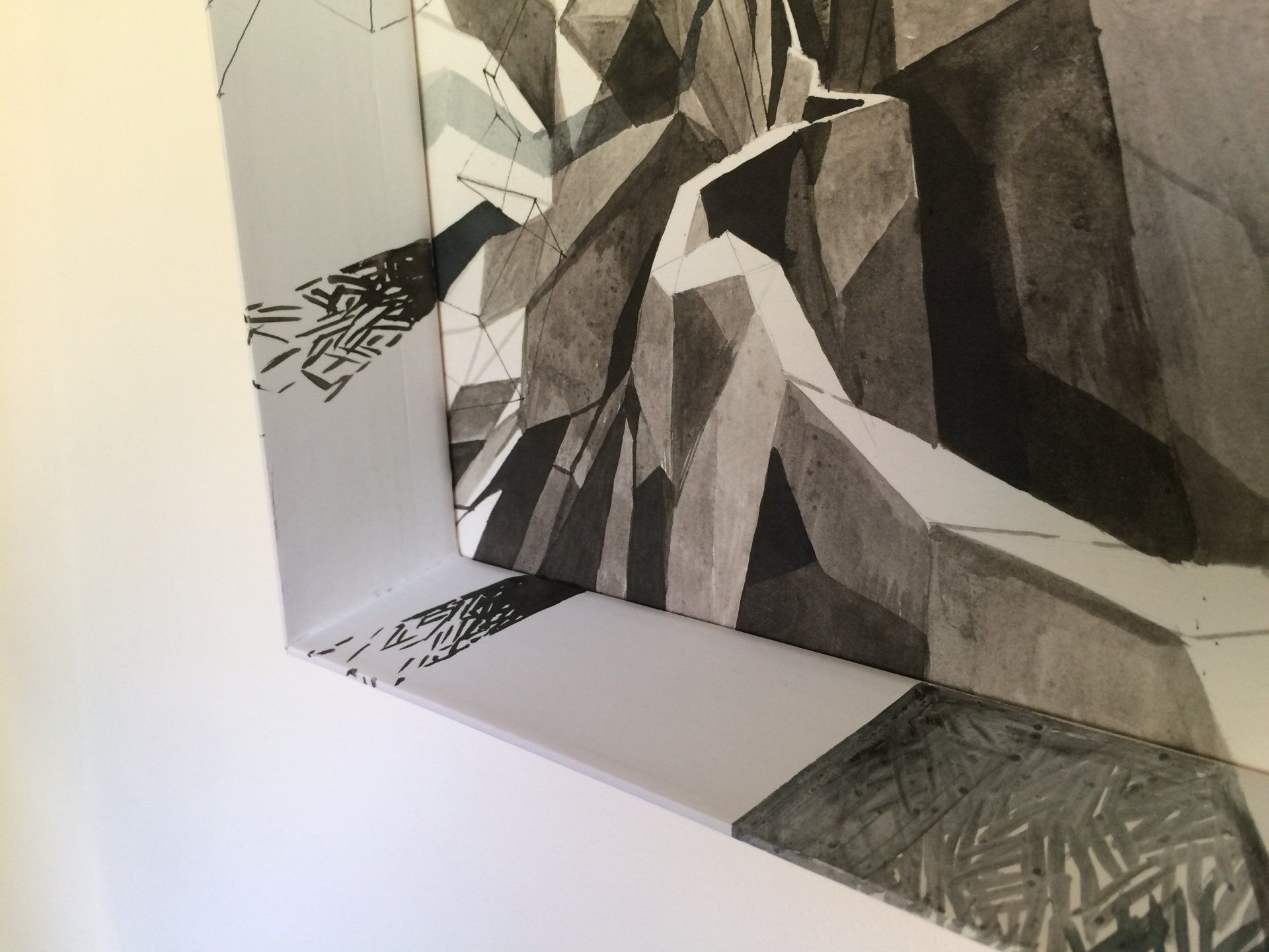 Cette ligne a suivi son chemin d’abord se métabolisant au bain de la couleur, puis intégrant ce qu’une formation technique en design d’espace lui a envoyé d’ondes axonométriques et de molécules de points de fuite, de formes découpées et de volumes, mais toujours refusant obstinément de se plier à la trivialité de l’utilitaire.